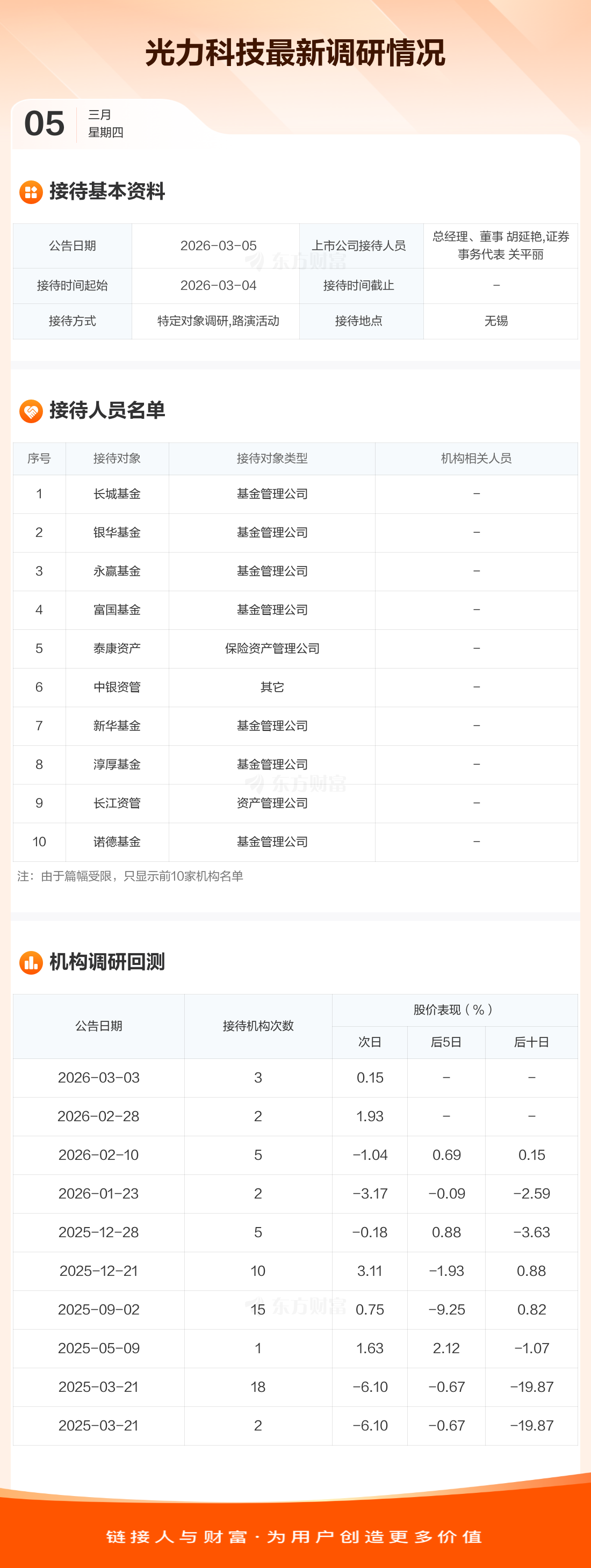 光力科技3月5日公告稱,3月4日接待長(zhǎng)城基金等13家機(jī)構(gòu)調(diào)研。接待人員包括總經(jīng)理、董事 胡延艷,證券事務(wù)代表 關(guān)平麗。