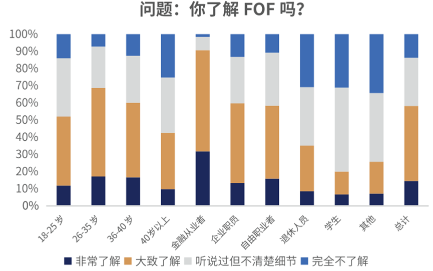 報告數(shù)據(jù)顯示,近50%的投資者沒有購買過FOF;40%的人完全不了解FOF或僅聽說過。