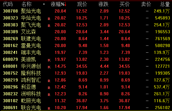 Micro LED概念股盤中集體爆發(fā),截至收盤,聚燦光電、華燦光電、聚飛光電、聯(lián)建光電、雷曼光電等近10股20%漲停。