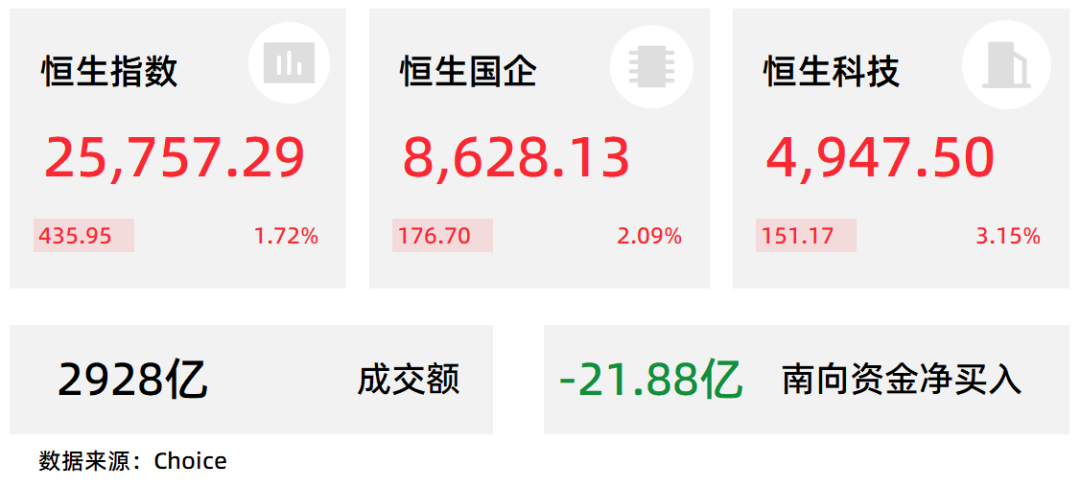 3月6日,港股三大指數(shù)高開高走,恒生科技指數(shù)大幅反彈3.15%,恒生指數(shù)、國企指數(shù)分別上漲1.72%及2.09%。
