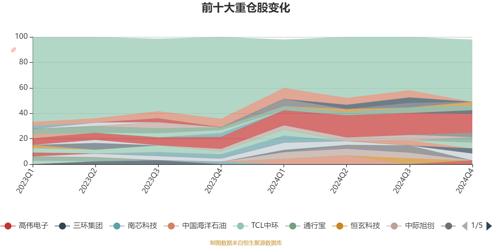 截至2024年四季度末,基金十大重倉股分別是立訊精密、中國移動、寧德時代、滬電股份、阿里巴巴-W、騰訊控股、美的集團、高偉電子、紫金礦業(yè)、鵬鼎控股。