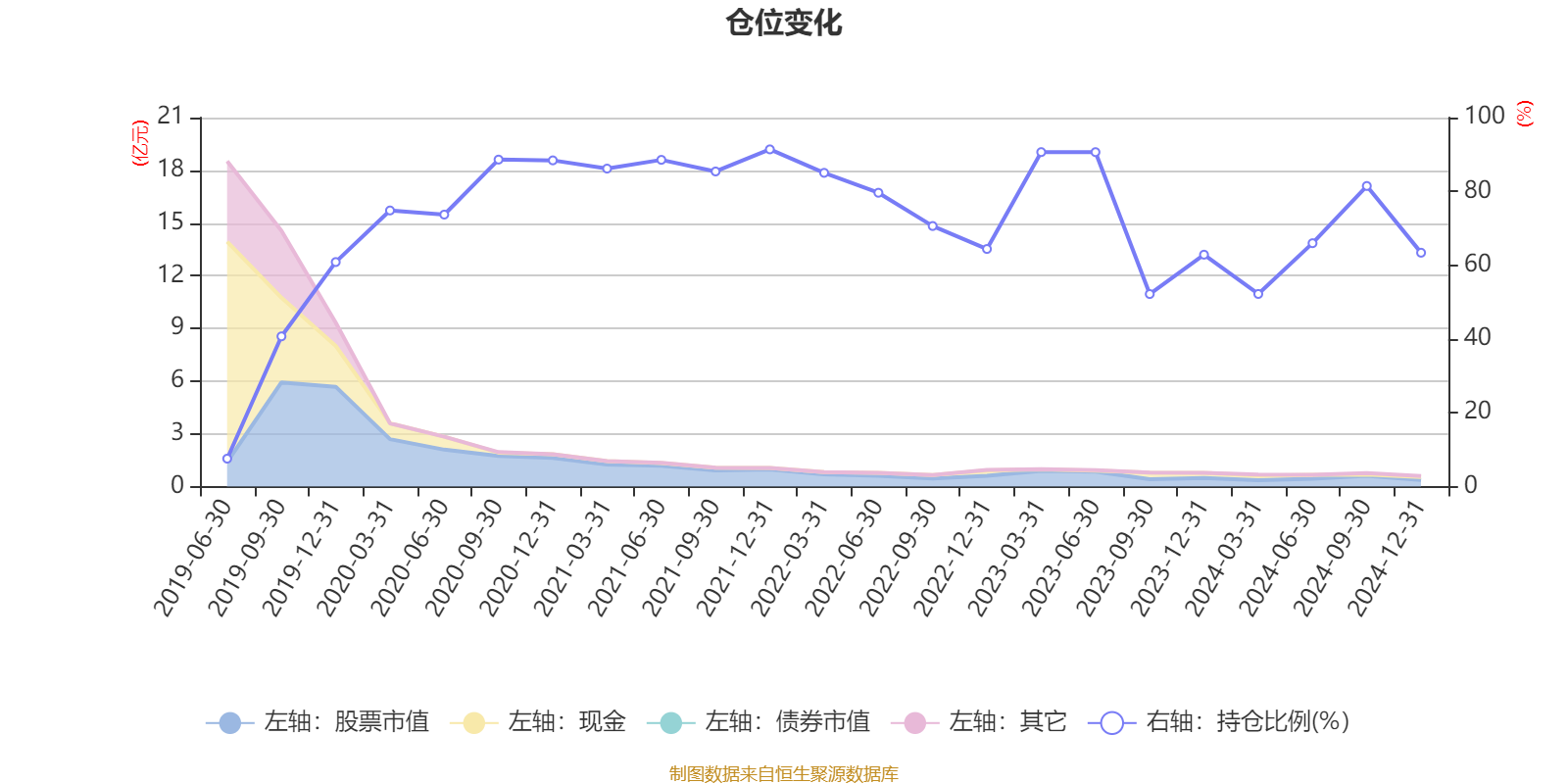 據(jù)定期報告數(shù)據(jù)統(tǒng)計,近三年平均股票倉位為71.58%,同類平均為83.34%。2021年末基金達到91.39%的最高倉位,2019年上半年末最低,為7.57%。