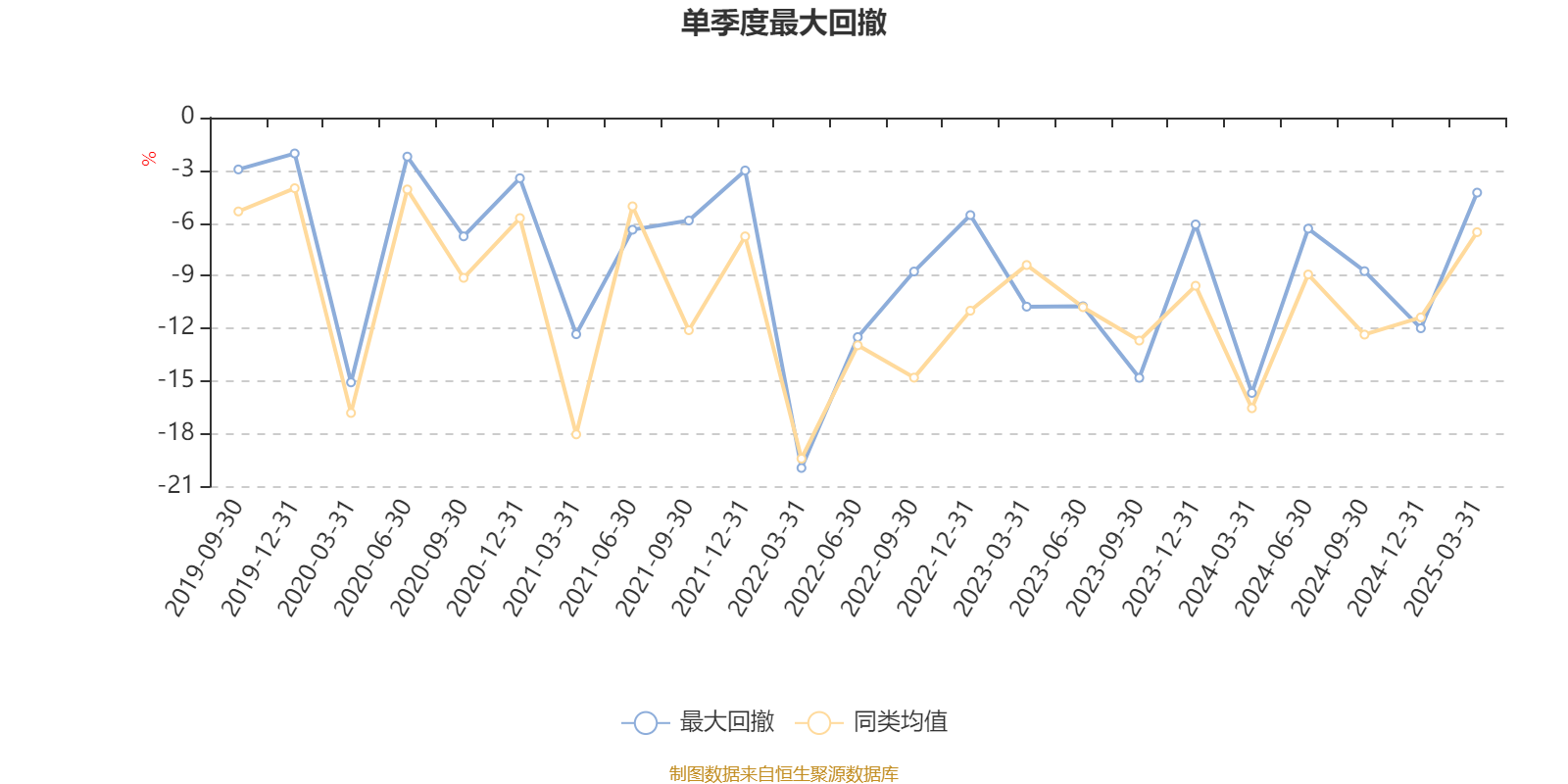 通過所選區(qū)間該基金凈值增長率分位圖,可以觀察該基金與同類基金業(yè)績比較情況。圖為坐標原點到區(qū)間內某時點的凈值增長率在同類基金中的分位數(shù)。