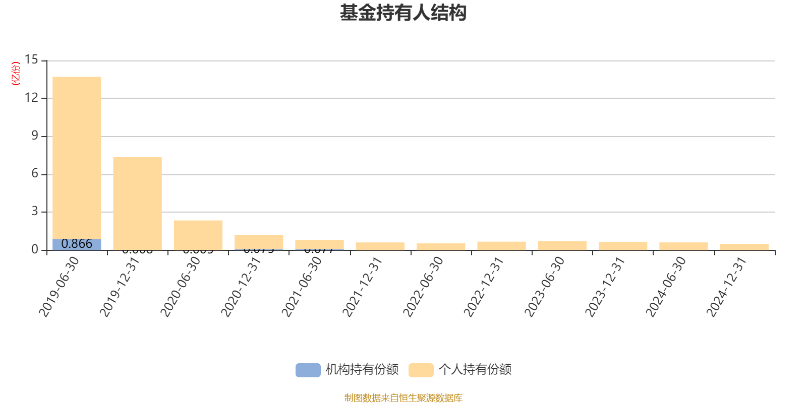 截至2024年12月31日,基金持有人共計1624戶,合計持有4947.45萬份。其中管理人員工持有21.41萬份,占比0.43%,個人投資者占比100.00%。
