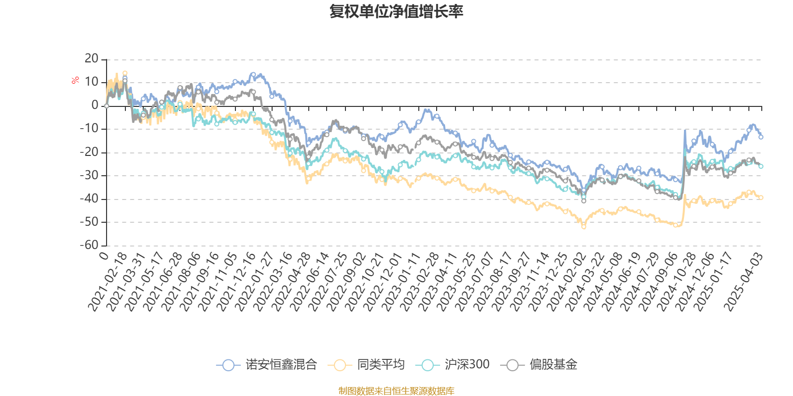 截至4月3日,諾安恒鑫混合近三個月復權單位凈值增長率為14.38%,位于同類可比基金59/536;近半年復權單位凈值增長率為4.77%,位于同類可比基金172/536;近一年復權單位凈值增長率為20.61%,位于同類可比基金84/532;近三年復權單位凈值增長率為-7.67%,位于同類可比基金90/306。