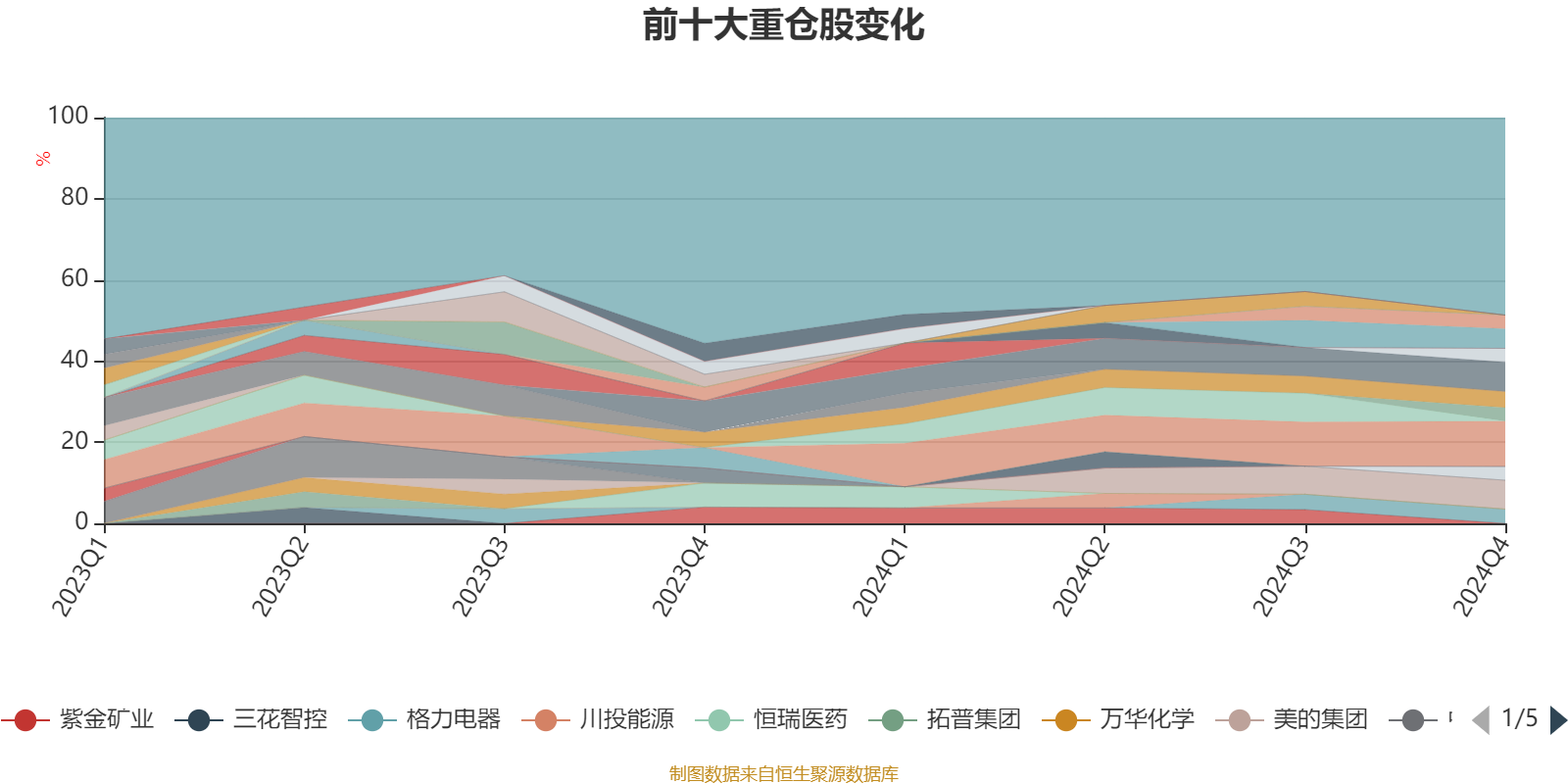 截至2024年末,基金十大重倉股分別是寧德時代、立訊精密、美的集團、比亞迪、長江電力、格力電器、尚太科技、鵬鼎控股、新宙邦、中芯國際。