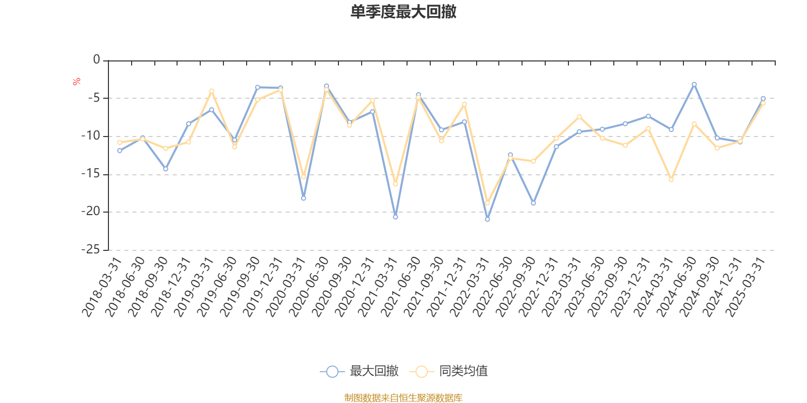 通過所選區(qū)間該基金凈值增長率分位圖,可以觀察該基金與同類基金業(yè)績比較情況。圖為坐標原點到區(qū)間內(nèi)某時點的凈值增長率在同類基金中的分位數(shù)。