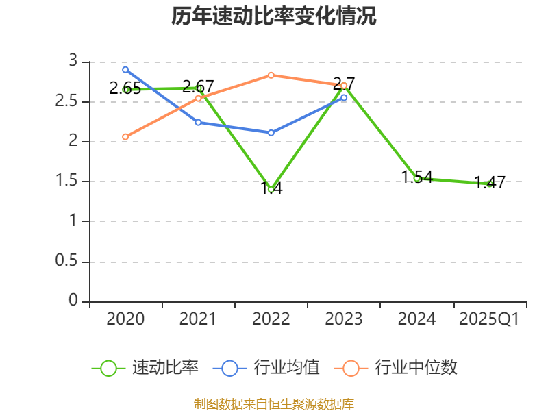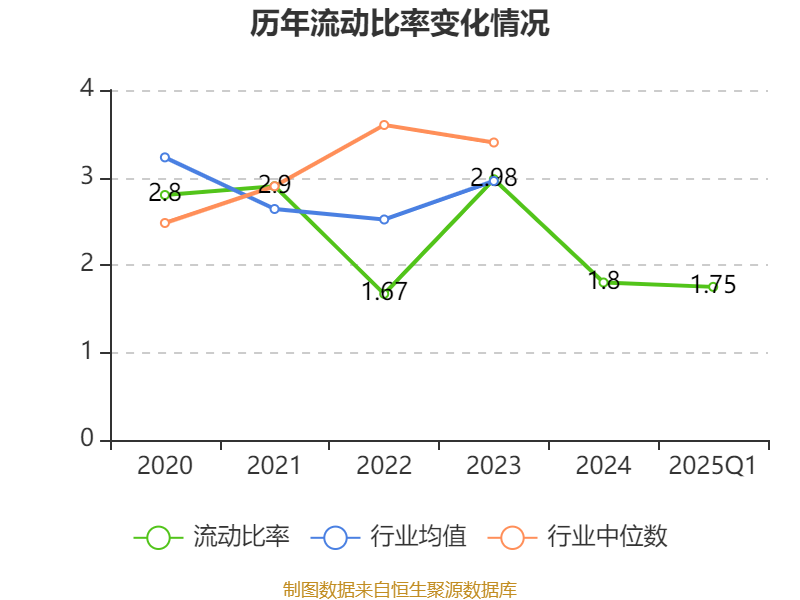 2025年第一季度,公司流動比率為1.75,速動比率為1.47。
