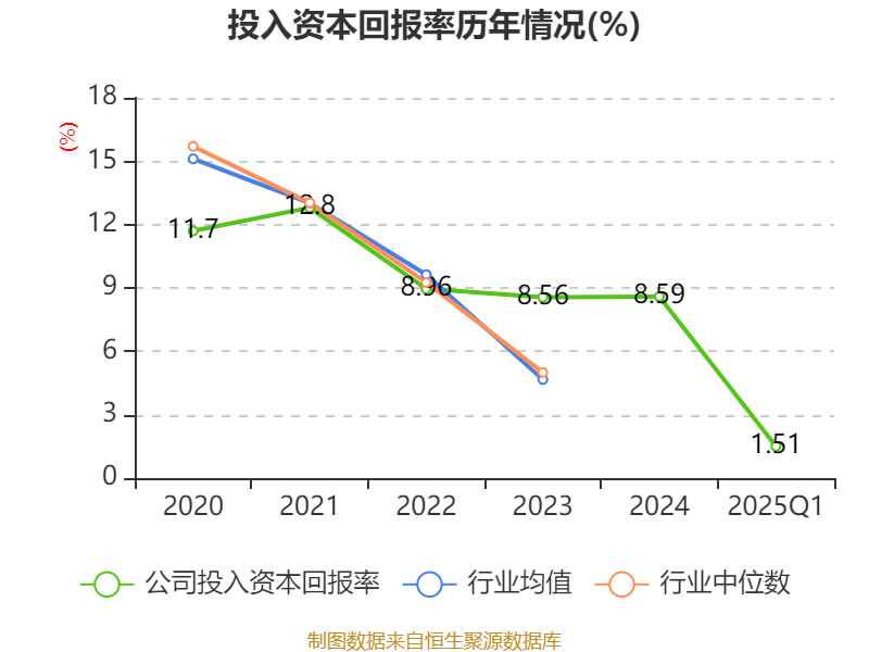 盈利能力方面, 2025年一季度公司加權(quán)平均凈資產(chǎn)收益率為2.21%,同比上升0.38個百分點(diǎn)。公司2025年第一季度投入資本回報率為1.51%,較上年同期上升0.37個百分點(diǎn)。
