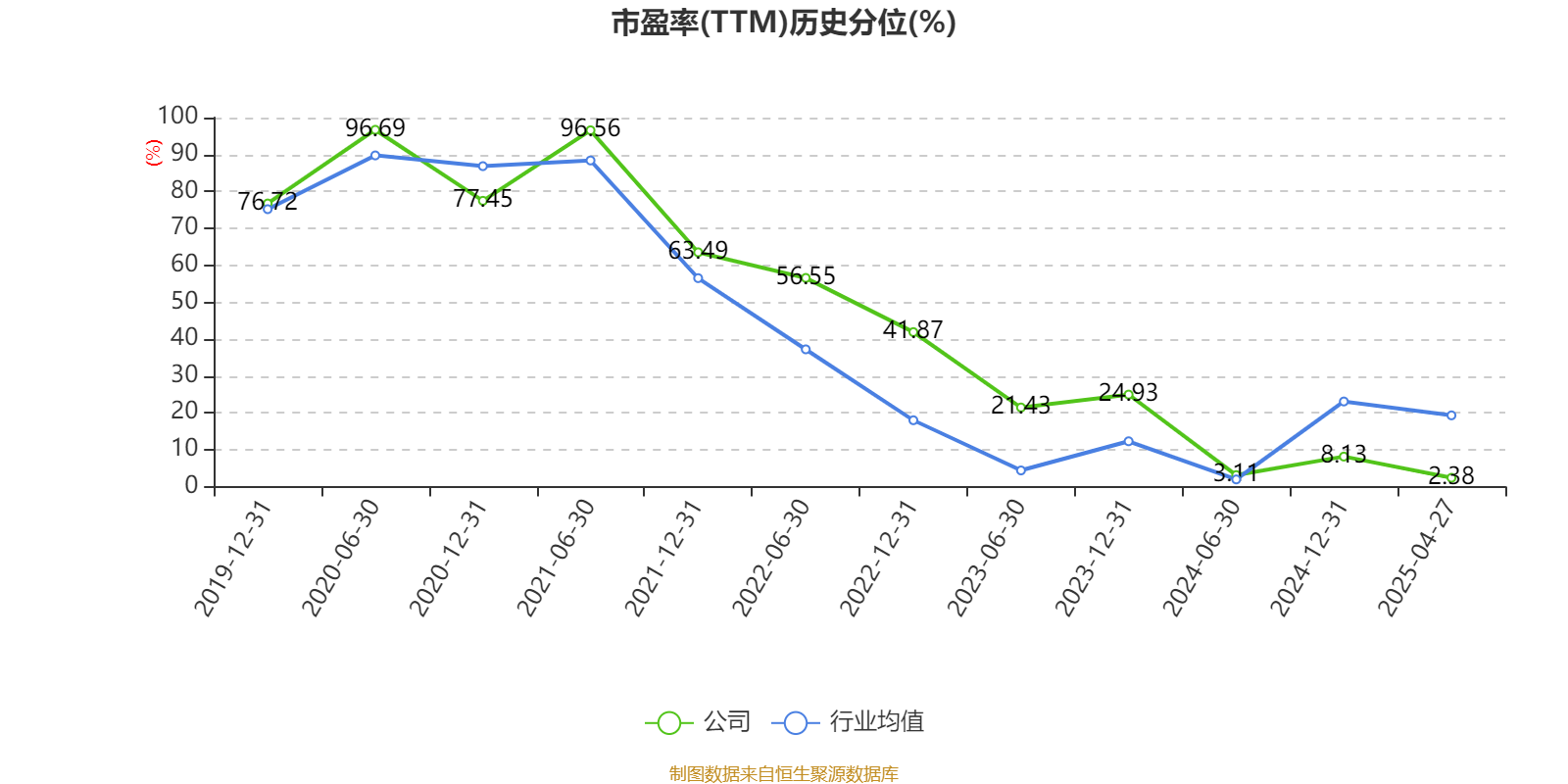 市盈率、市凈率為負(fù)時,不顯示當(dāng)期分位數(shù),會導(dǎo)致折線圖中斷。