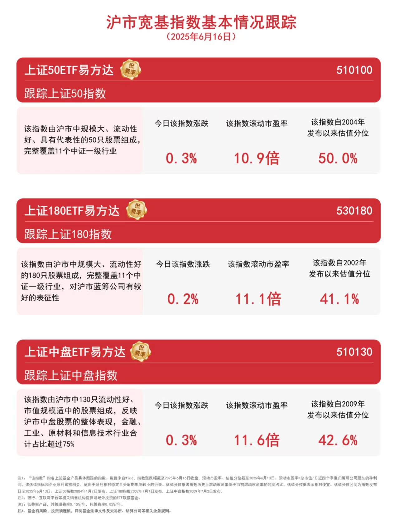 滬市寬基指數(shù)集體上漲,上證中盤ETF易方達(510130)、上證180ETF易方達(530180)等助力布局優(yōu)質(zhì)滬市企業(yè)