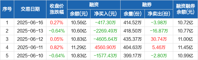 滬深300ETF融資融券信息顯示,2025年6月16日融資凈償還417.3萬(wàn)元;融資余額10.56億元,較前一日下降0.39%。