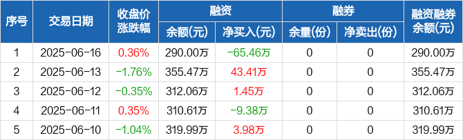 2025年6月16日建材ETF融資凈償還65.46萬元,融資余額290萬元