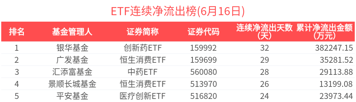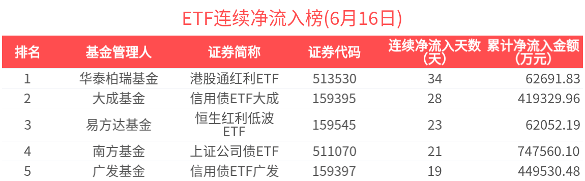 ETF資金榜 | 港股通紅利ETF(513530)資金加速流入,滬深300ETF(510300)單日“吸金”近17億元-20250616