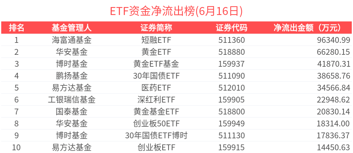 (原標題:ETF資金榜 | 港股通紅利ETF(513530)資金加速流入,滬深300ETF(510300)單日“吸金”近17億元-20250616)