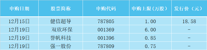 本周A股將有4只股票發(fā)行申購,其中科創(chuàng)板2只,深市主板2只。