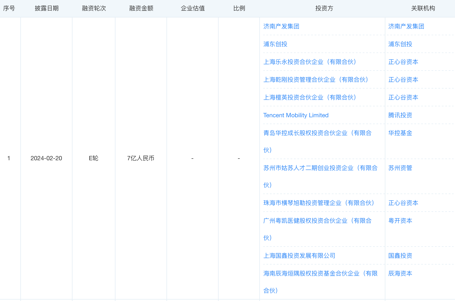 截至目前,信諾維總共歷經(jīng)8輪融資。其中,該公司于2024年2月完成的E輪融資達7億元,投資方包括濟南產(chǎn)發(fā)集團、浦東創(chuàng)投、蘇州資管、國鑫投資等國有資本以及騰訊投資。