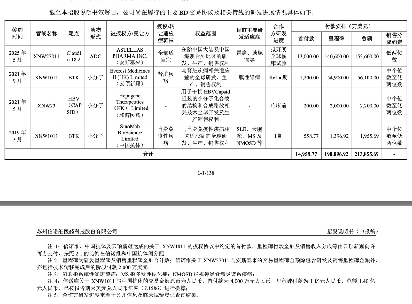 截至本招股說明書簽署日,信諾維分別與安斯泰來、云頂新耀、中國抗體等多家公司簽署了合作協(xié)議,就一系列創(chuàng)新藥或技術(shù)的研發(fā)、生產(chǎn)、注冊及銷售活動及權(quán)益安排作出約定,相關(guān)合作條款涉及首付款、里程碑付款、銷售收入分成等多種約定。