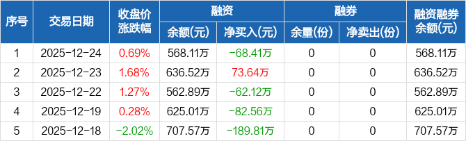 融資方面,當(dāng)日融資買入164.23萬元,融資償還232.63萬元,融資凈償還68.41萬元。融券方面,融券賣出0份,融券償還0份,融券余量0份,融券余額0元。融資融券余額合計(jì)568.11萬元。