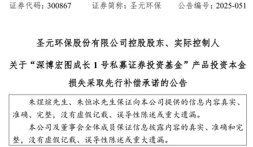 12月27日晚間,圣元環(huán)保緊急公告稱, 控股股東、實(shí)際控制人承諾就基金產(chǎn)品投資本金損失先行補(bǔ)償。